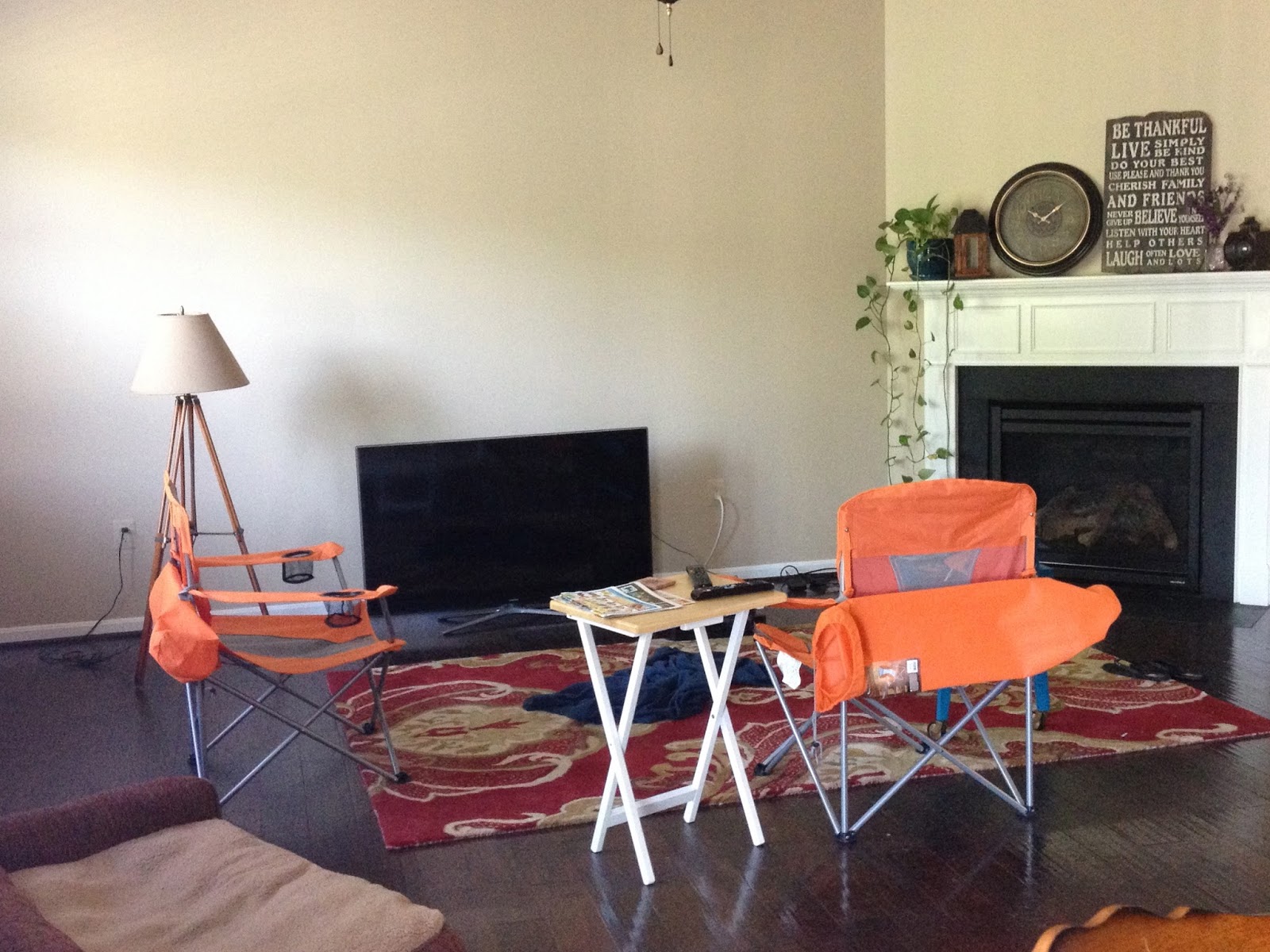 2. Sounds like it's slowly coming together due to the jerks that moved you! Hope things start falling in to place once you get your new furniture. It would drive me nuts to be there for a week and not have everything set up yet, or a way to have everything set up. I do love your makeshift living room though. 😉