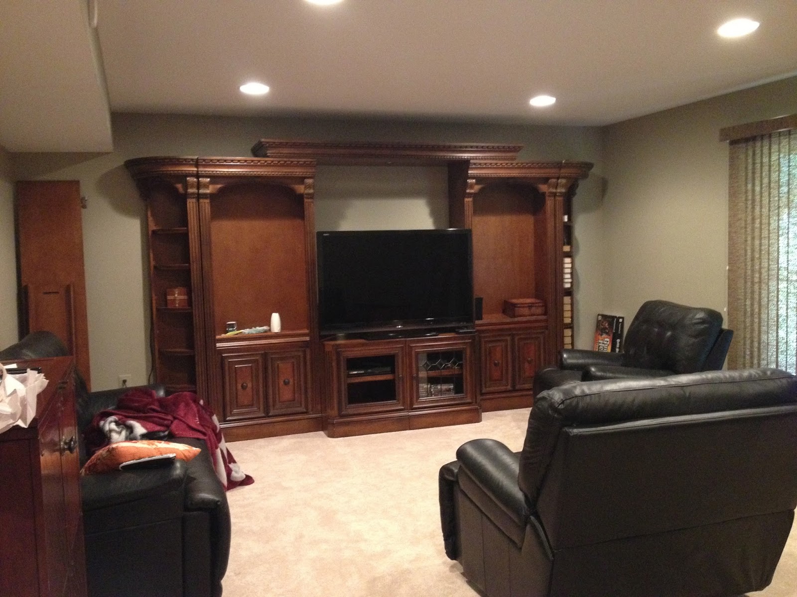 Where our old living room furniture ended up…in the basement “media room”. Think it’s going to be the “man cave”. J has sort of taken it over. lol!