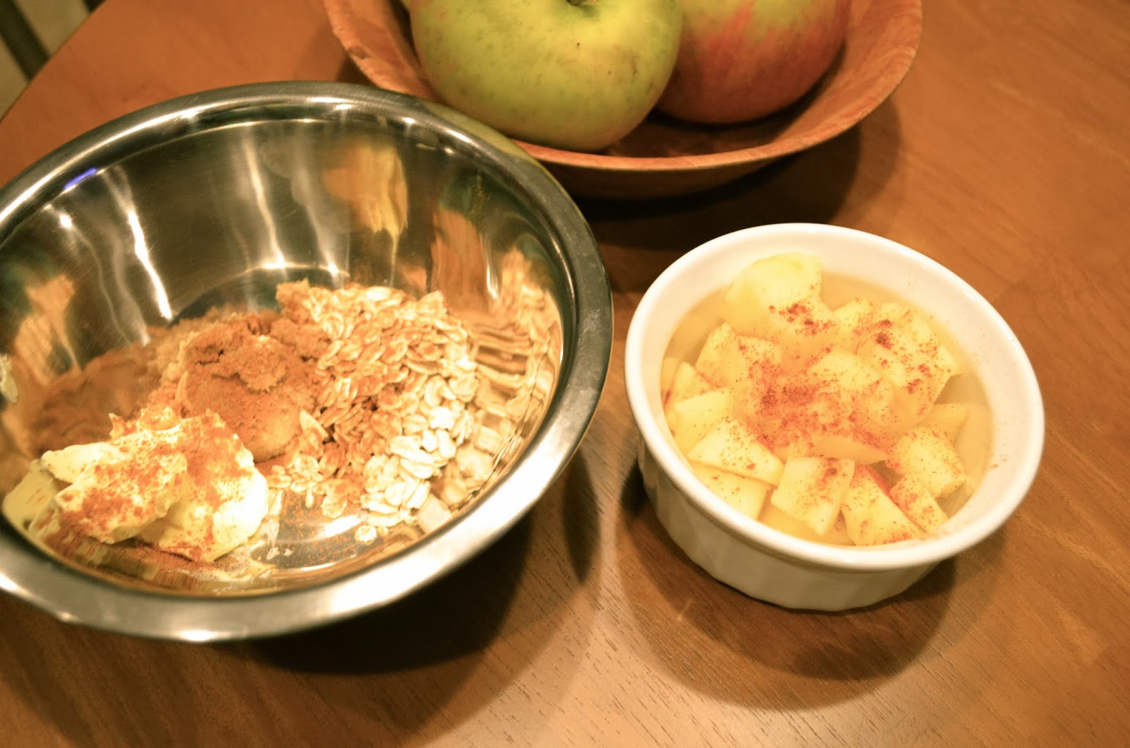 Another of my Fall favorites is warm desserts! Well, I love desserts in general. I think I got my sweet tooth from my grandma Archer! That lady always had dessert in the house! Always! Usually it was in the form of ice cream cups and push-ups…Schwans’s man goodies! I loved going to grandma’s for dinner…and dessert! Anyway…warm deserts— I love cobblers and crisps, and apple crisp is one of my absolute favorites! I came across a similar recipe a while back and I have been making my super easy version since! I love that it takes only 5 minutes, it’s single serving, and you probably already have all of the ingredients! So, without further ado…