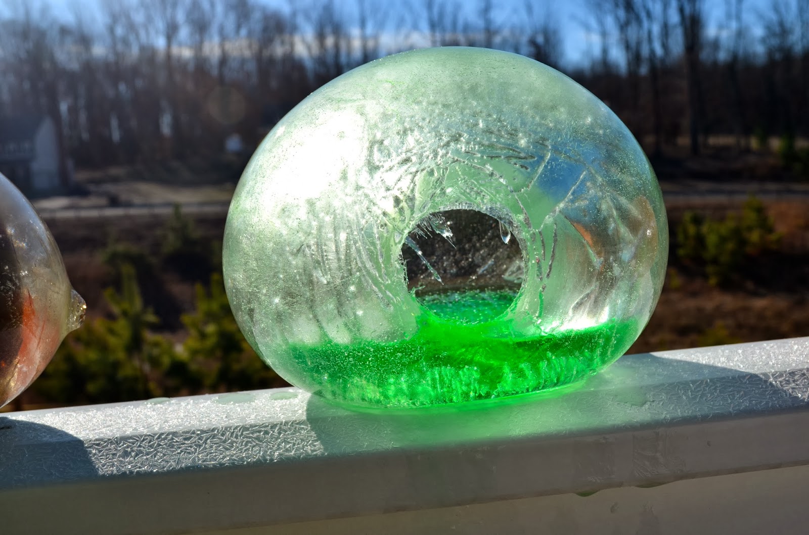 Because this was the other one….no colored water and only cold water added. Guess it could be something else….like maybe they were too close together overnight or in a warmer spot on the deck or something. Either way, they are pretty interesting!