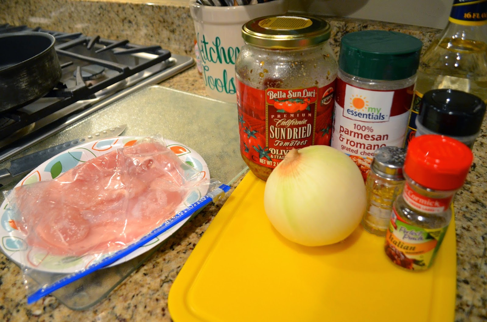 Lower the heat to med-low and let the wine cook off for a minute. Remove the chicken from the skillet to a plate and add the parmesan to the tomato mixture.