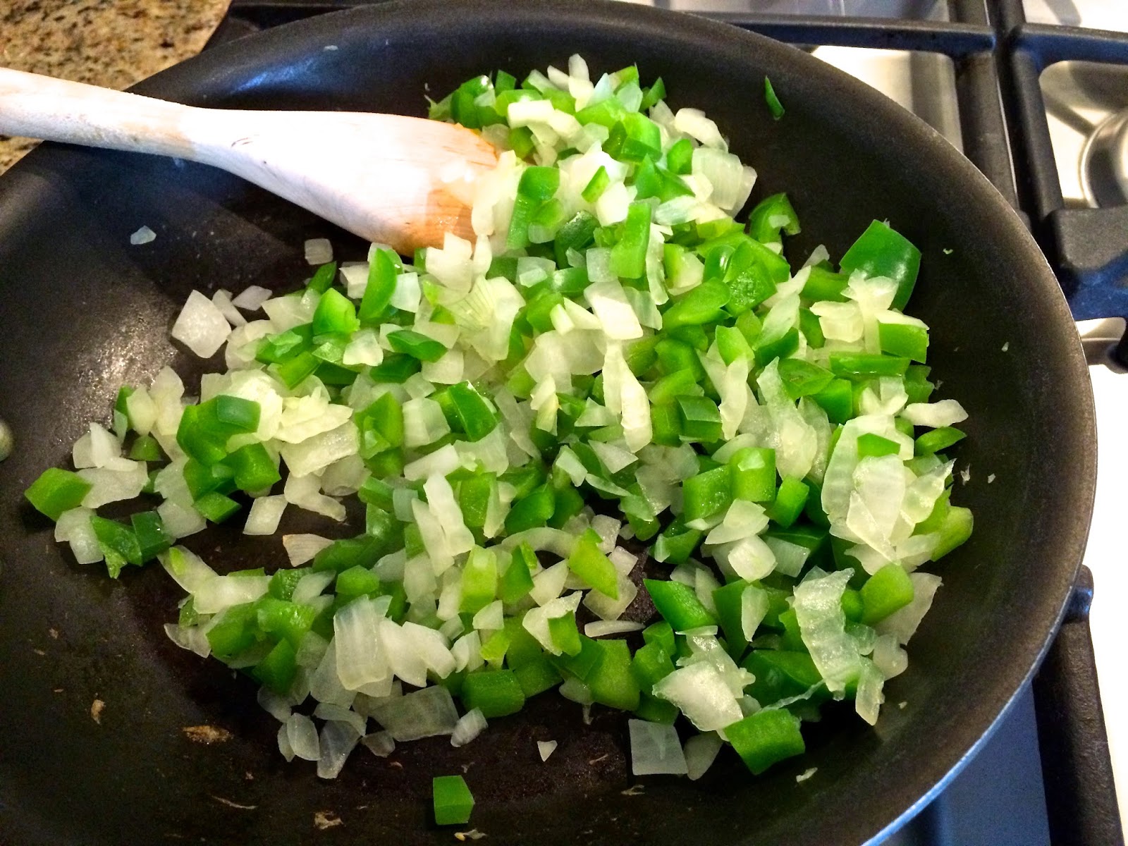 First chop up the pepper and onion. I dice them to keep the pieces small.