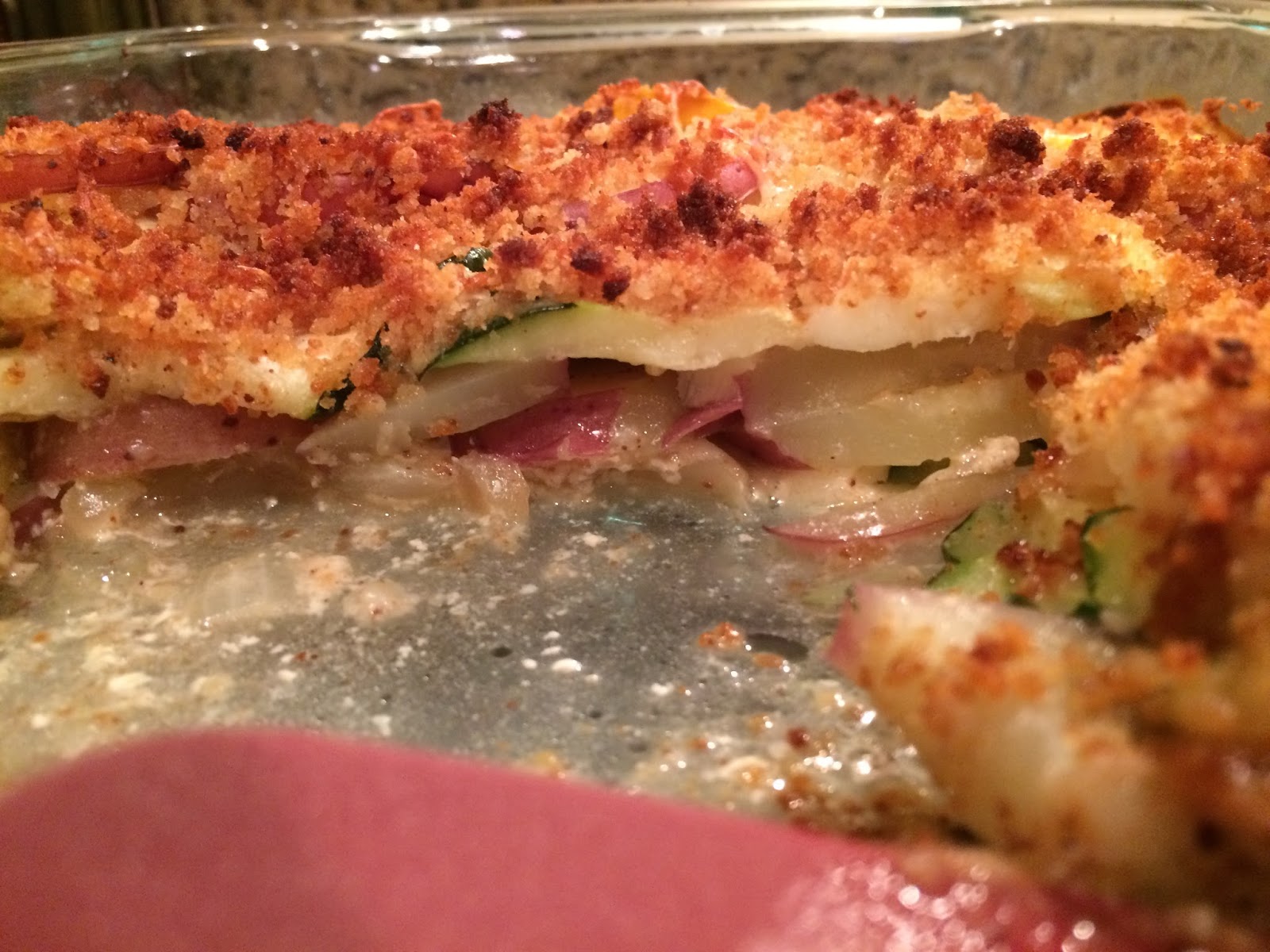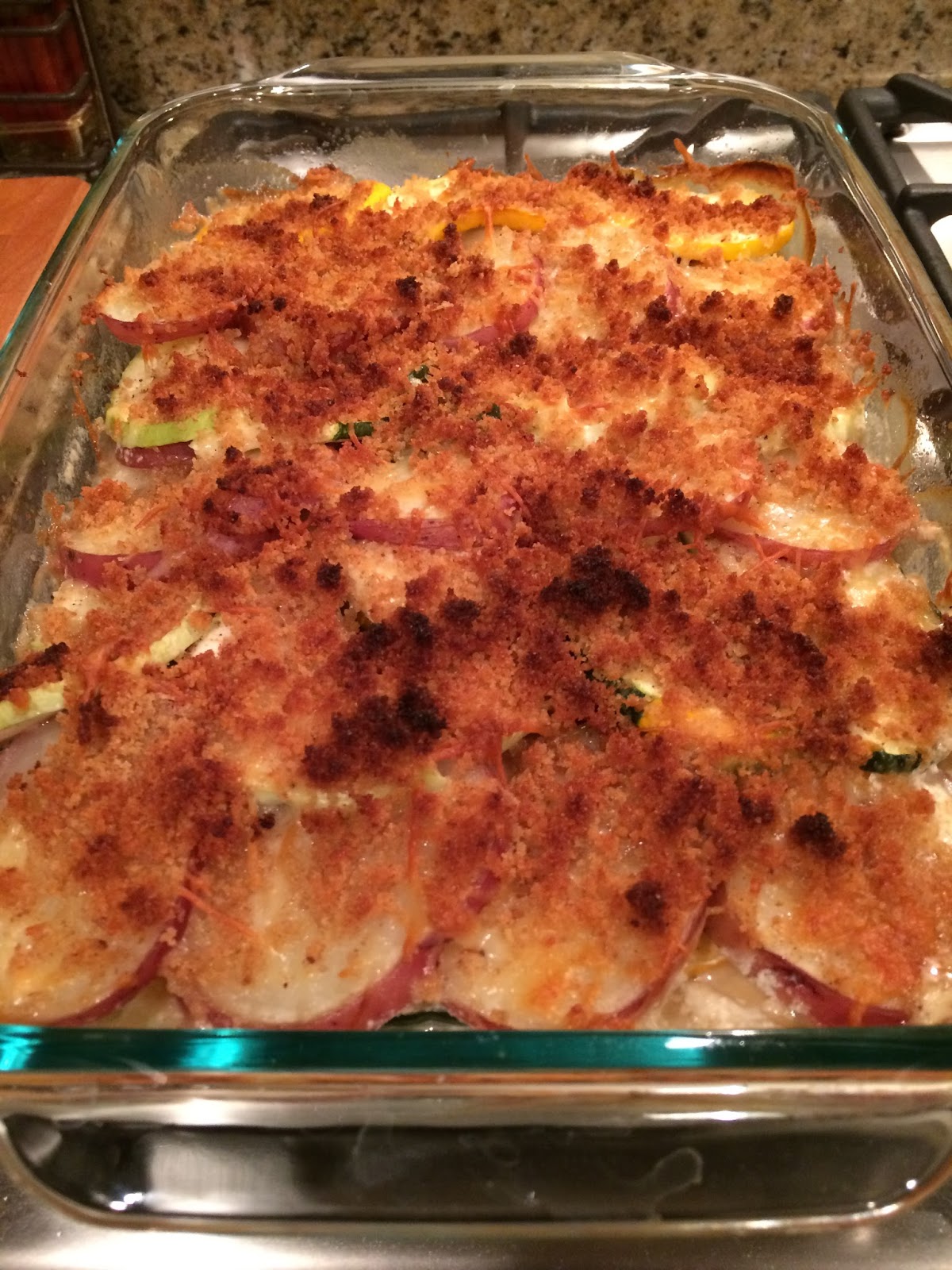 A few months ago, a friend did me a kindness by sending over bag full of various summer squashes from her garden (Thanks Danielle!) Well the Mr. and I are were not big squash fans, so I wanted to find a recipe we would like, and that still would use up the squash. That is how I found this amazing Pattypan Squash Gratin recipe!