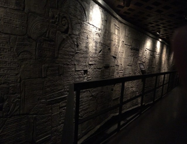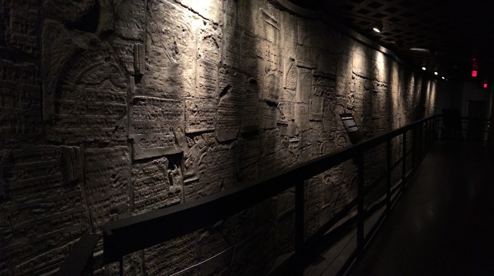 “After the war, a memorial wall was constructed out of the fragments of several hundred tombstones that were unearthed in the Remu synagogue’s cemetery in Cracow, Poland. Built in 1552, the synagogue served the Jewish community of Cracow for almost 400 years. During the German occupation of Poland its cemetery was used as a site for mass executions. This is a casting of the wall. The original mosaic wall stands in the Remu synagogue’s cemetery as a memorial to the those who died in the Holocaust.”
