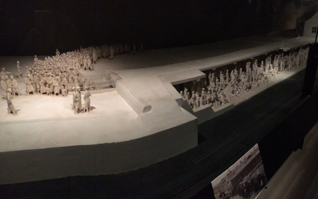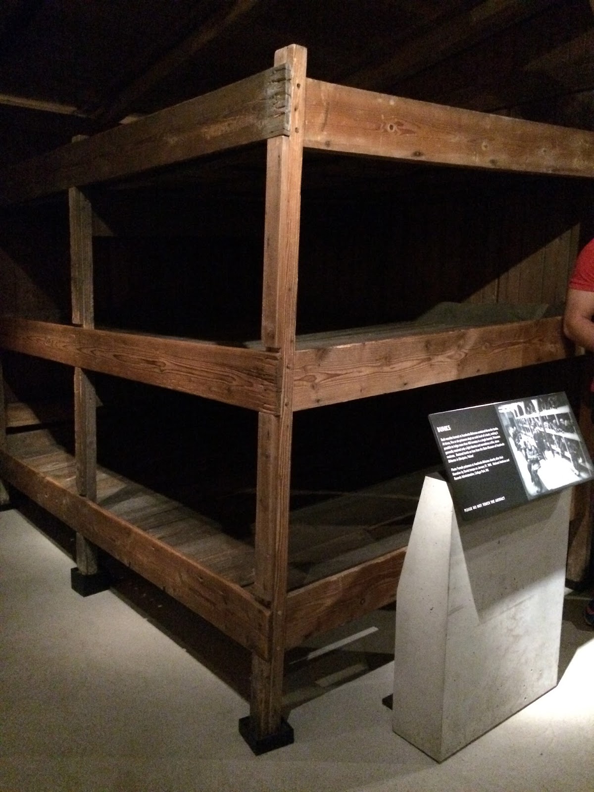 The museum has a large scale replica of the Auschwitz Crematorium II. Auschwitz had 4 of them, each of which could incinerate more than 1,000 people per day. Victims would enter believing they were going to the “shower room”, but the spigots on the ceiling released gas instead. The bodies of the dead would be removed and burned in the connecting crematoria by slave workers.