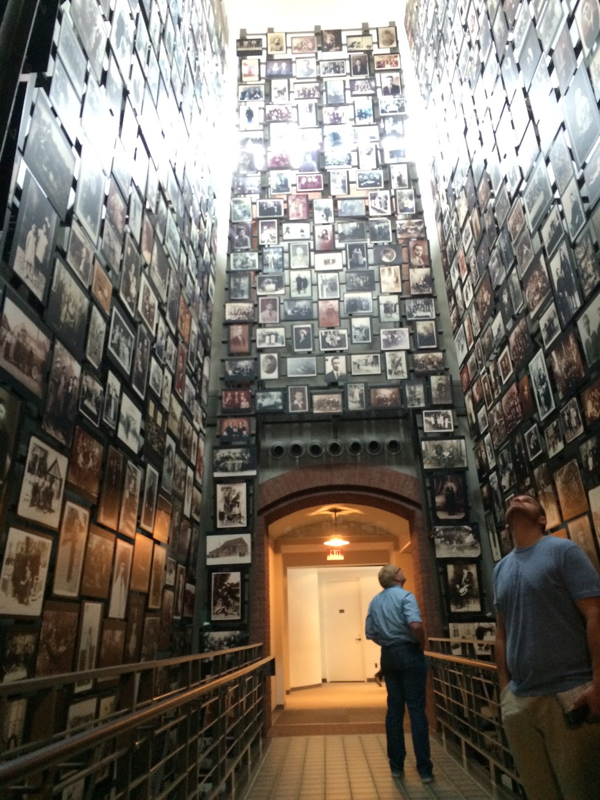 These photos were rescued from a prominent photographer in a Shtetl, a Jewish community. These photographs lined this hall through 3 stories. Statistically, two in every 3 people in these photos did not survive the Holocaust.