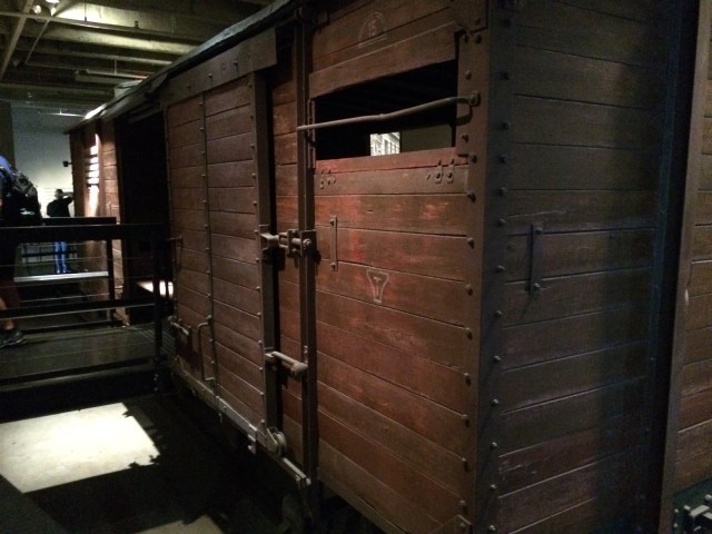 A replica train car like those used to transport Jews. They had standing room only and would sometimes travel for days in the freezing temperatures with no heat, no food, and no water.