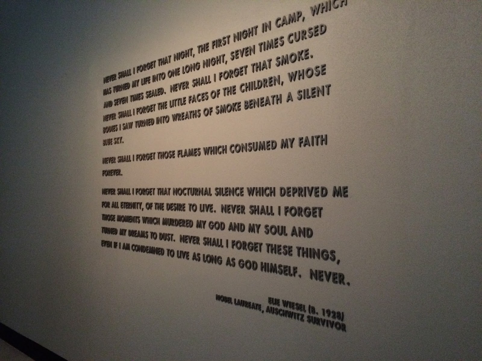 Other exhibits are located on the 2nd floor and Lower Level (basement), including From Memory to Action– an exhibit for more recent acts of Genocide including what is currently happening in Syria, where the question from Holocaust survivor Elsie Wiesel is posed, “When we say ‘never again,’ what does that mean?”