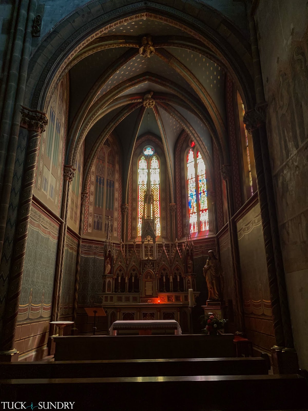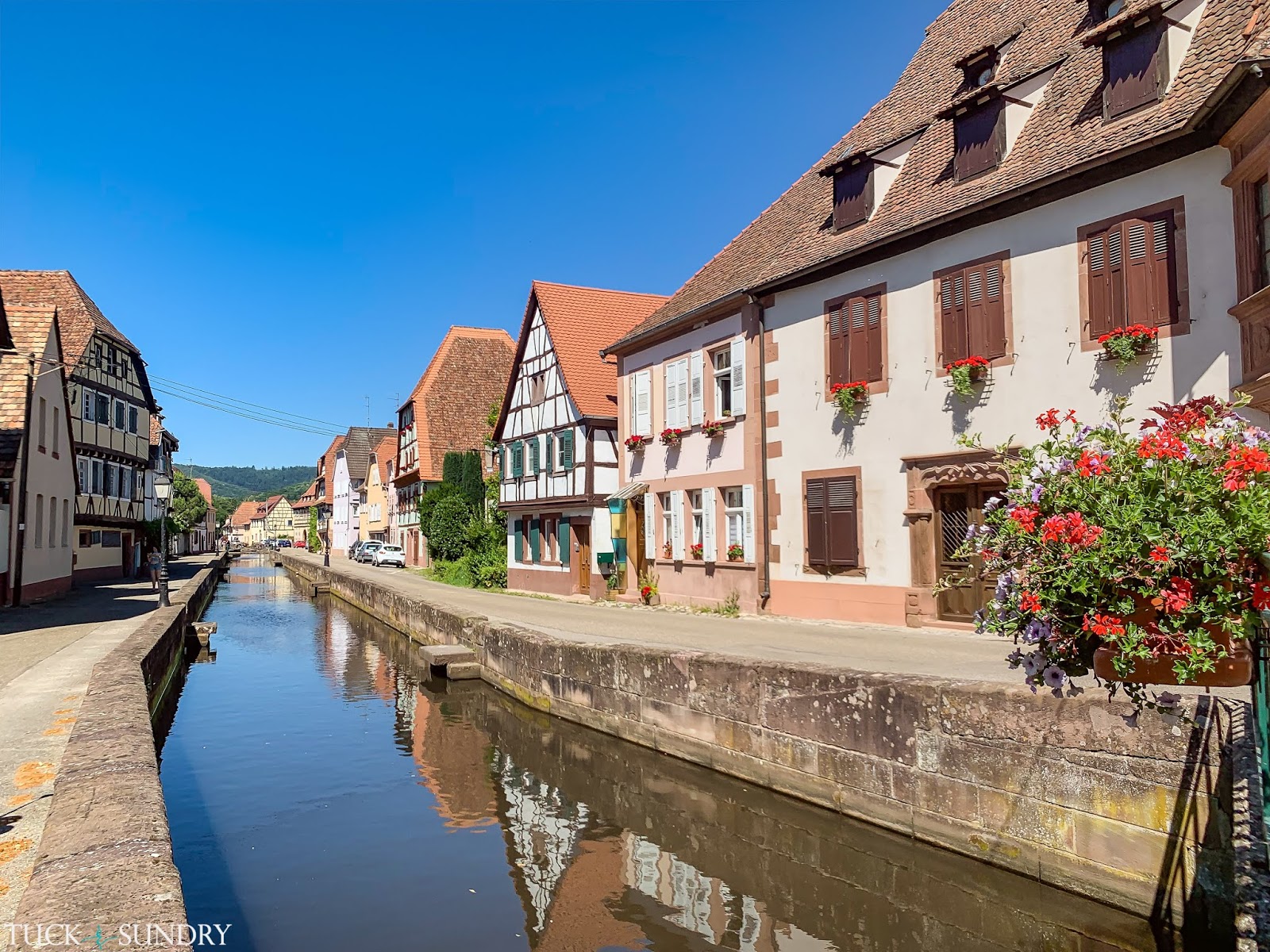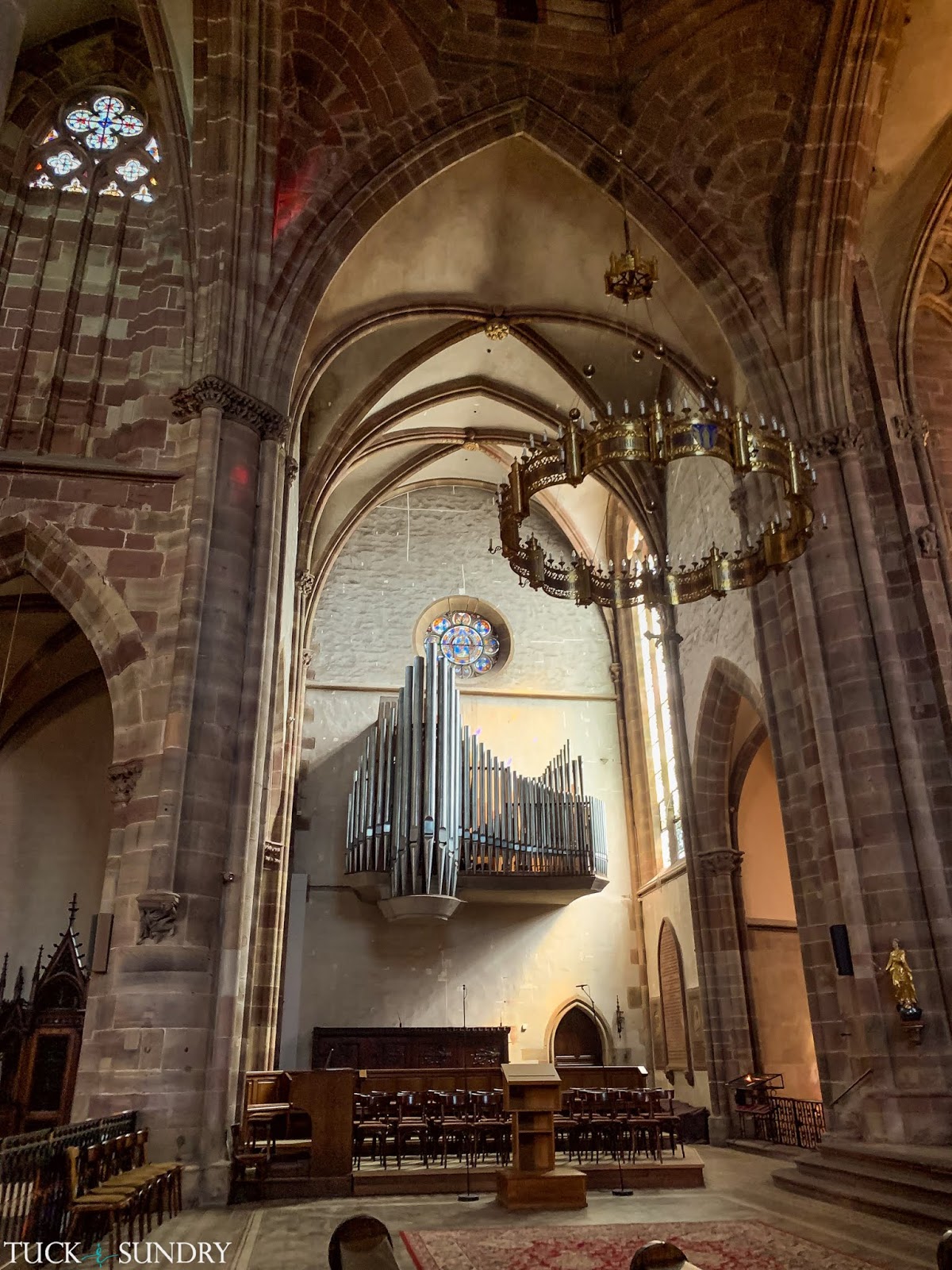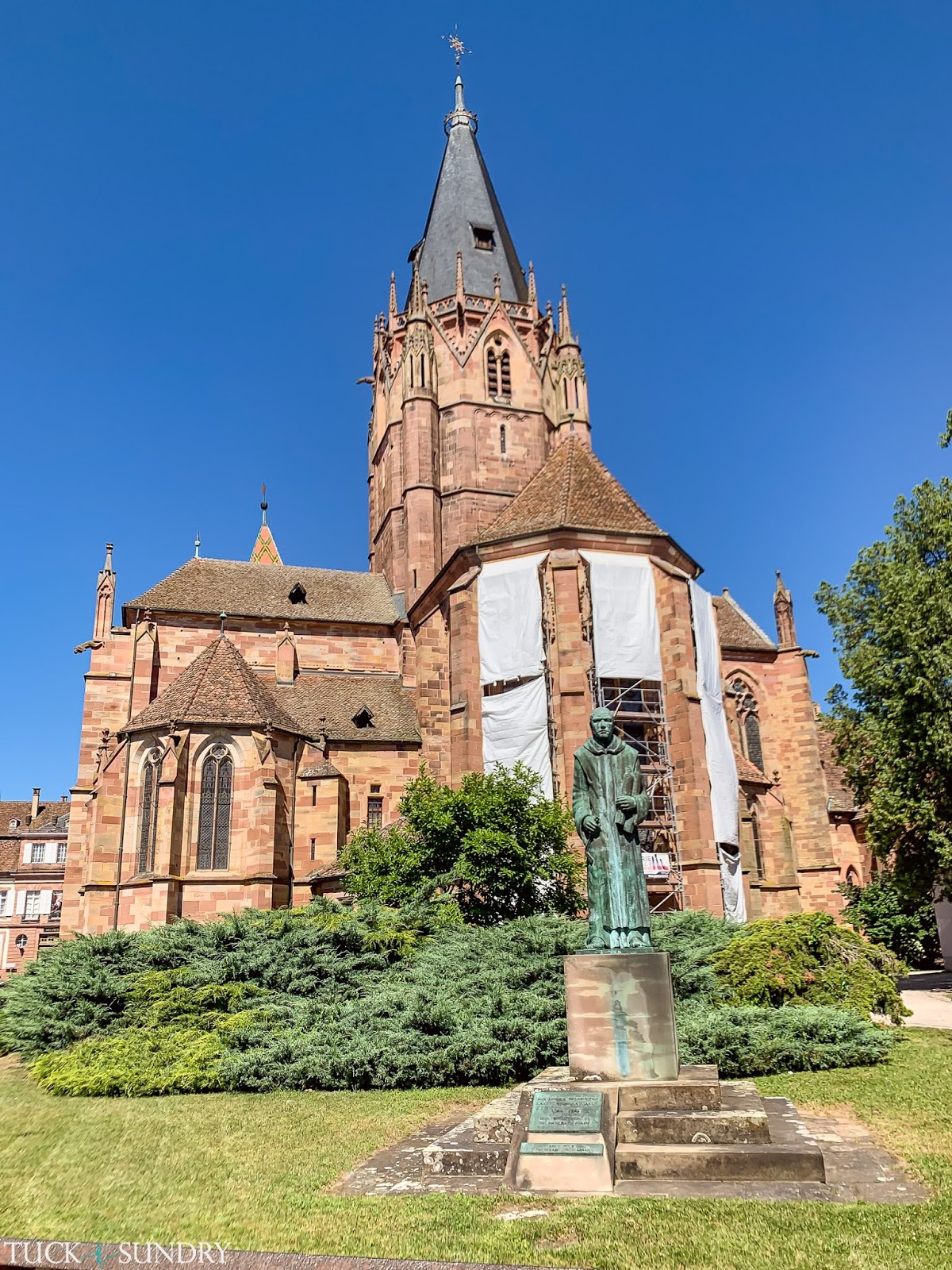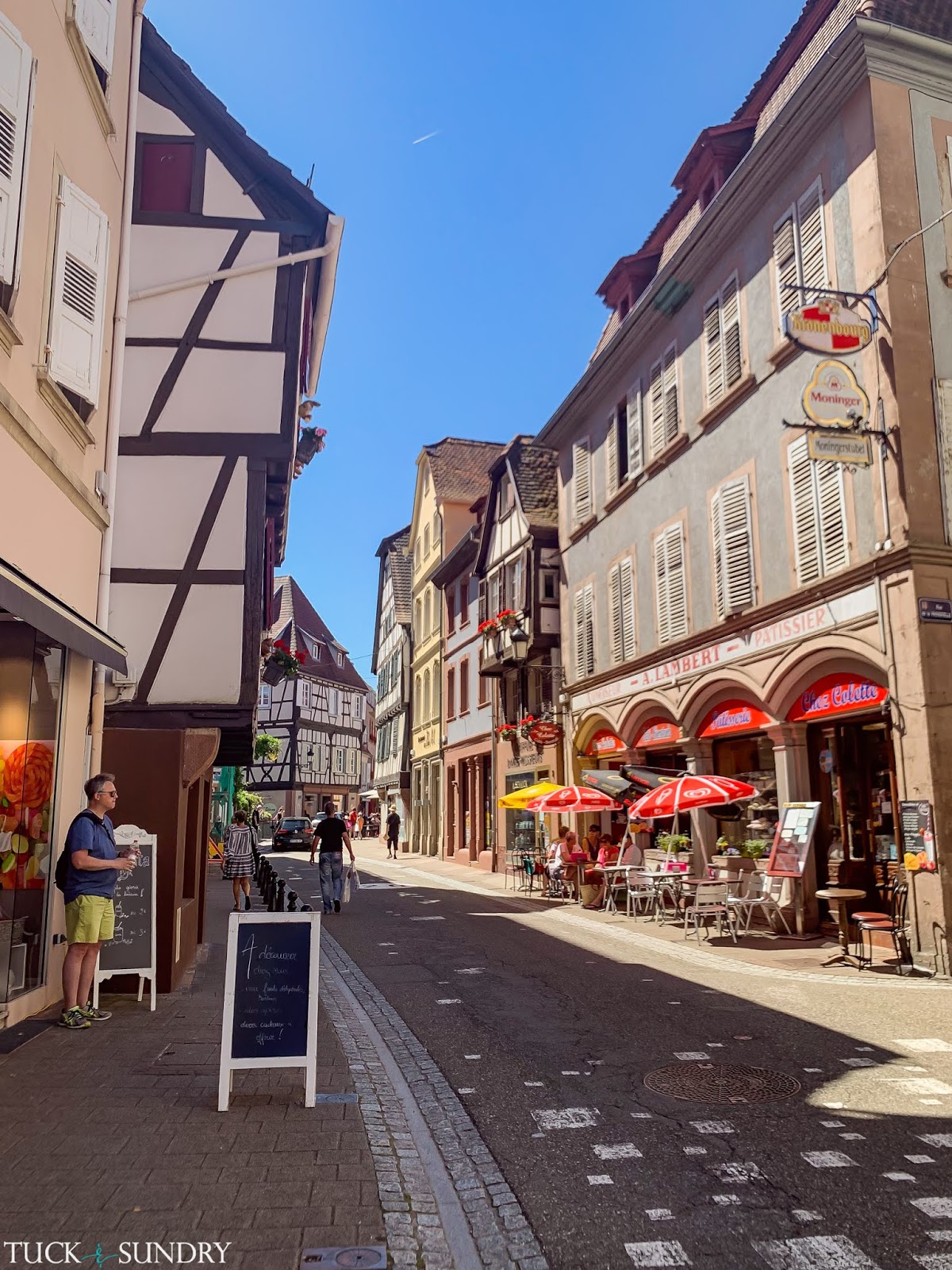 Most of the villages in this area are medieval villages dating back to the 8th century. The Gothic style Abbey of Sts Peter and Paul, dates back to the 11th century, and is in the heart of what remains of the “walled city.” Some parts of the wall remain intact and make for a lovely walk around the Old Town. If you have a whole day, you could spend some time hiking the surrounding vineyards and the Romanesque Trail. We just spent the morning walking around the old town, eating croissants, and enjoying the sweet smells of French bakeries!