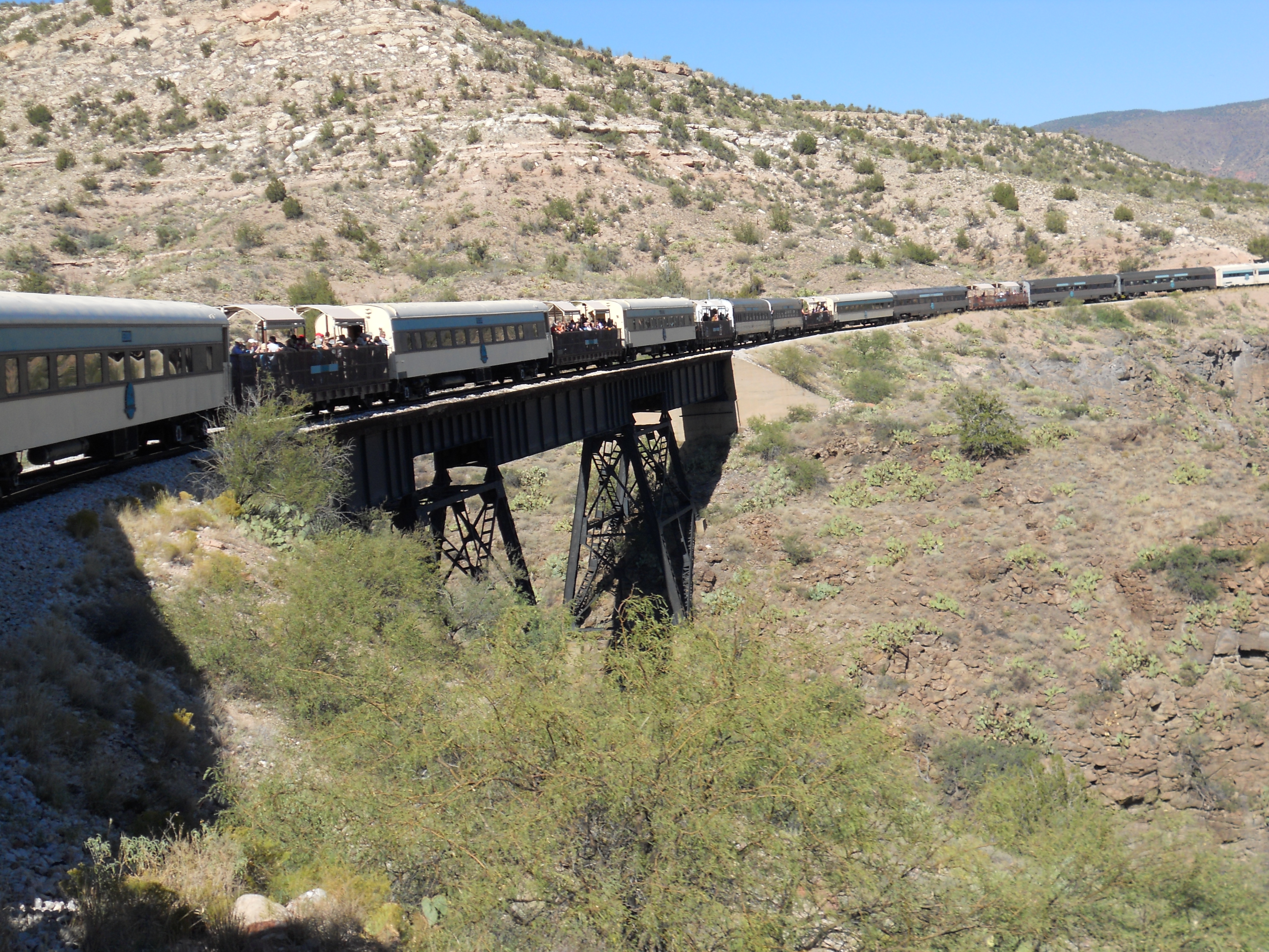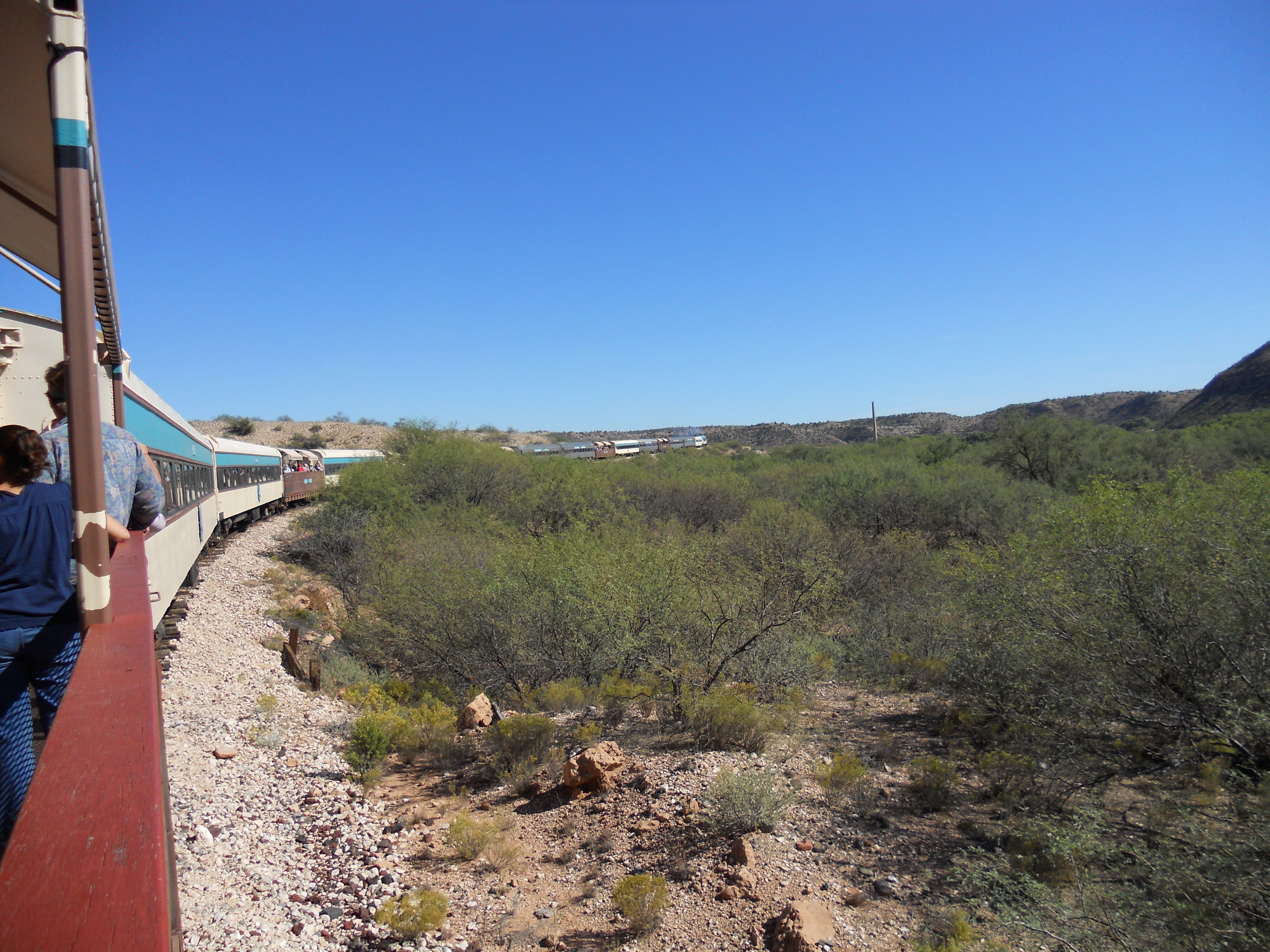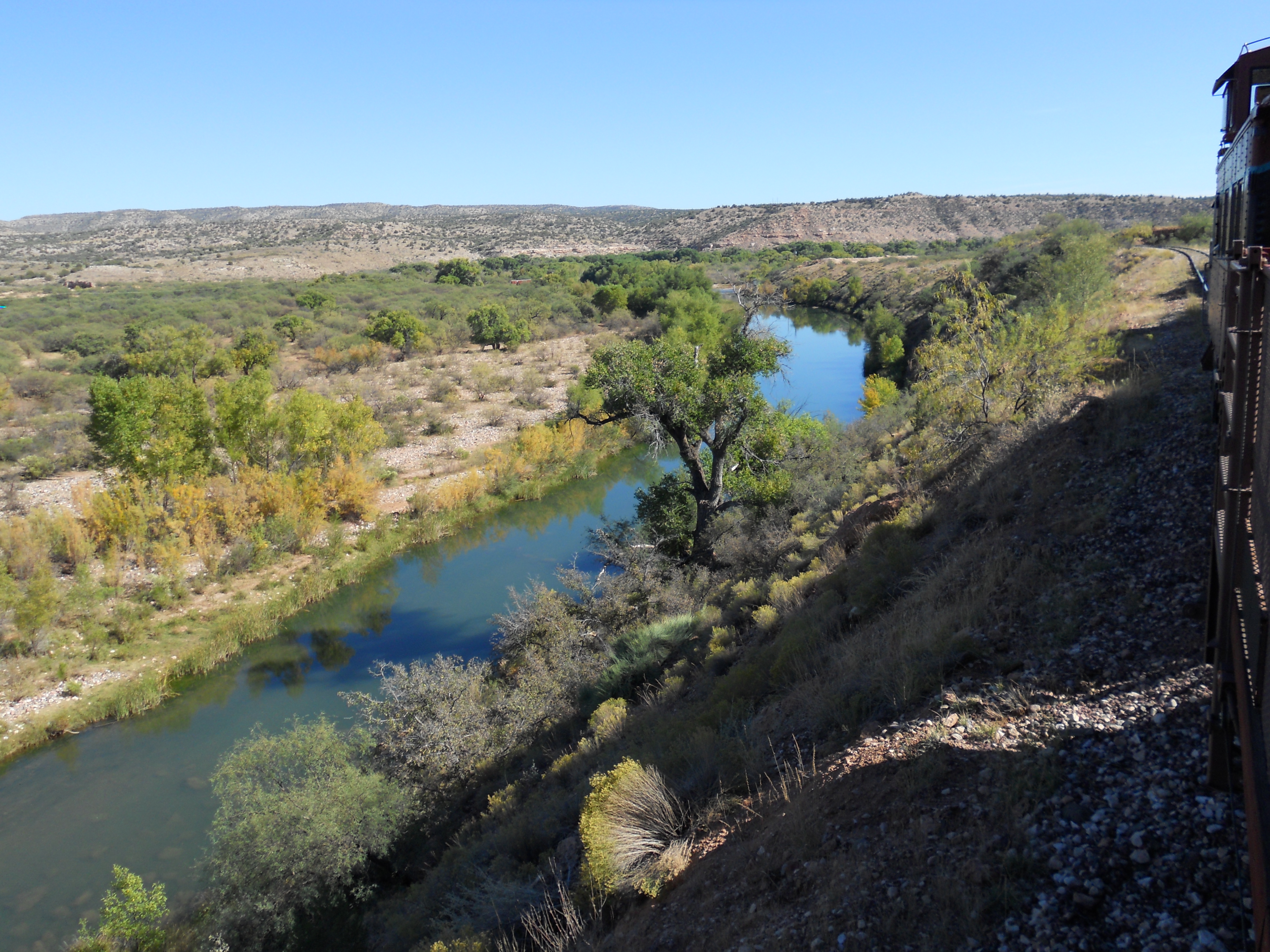 There is a train trip on the Verde Canyon Railroad that I have been wanting to check out for a while. It’s just a small 20 min trip up one way, and back the same way. We finally got some time and motivation to go try it out a few weeks ago. They have a special “Ales on Rails” all through the month of October to celebrate Oktoberfest, and we managed to get reservations for the last weekend. This 4 hour trip leaves out of Clarksville, which is a small town about 10 minutes north of Jerome on highway 89 and 2 hours north of Phoenix. It meanders up through the Verde Canyon along the Verde River to Perkinsville, an old abandoned ghost town. There, the engines switch to the other side of the train and you make your way back the way you came. It may sound a little boring, but both Jeremy and I were pleasantly surprised at how enjoyable it was. We rode in the first class car where they offered one free bottle of water and snacks. There was also a pay-as-you-go bar. The train has the traditional passenger cars with large panoramic windows, but it also offered open-air cars that you can walk out to and take in the fresh air and sounds of nature. The weather was absolutely perfect when we went…warm enough to not need a jacket, but cool enough to be able to stand in the sun without getting warm. It was a nice relaxing trip that I am sure we will take again.
