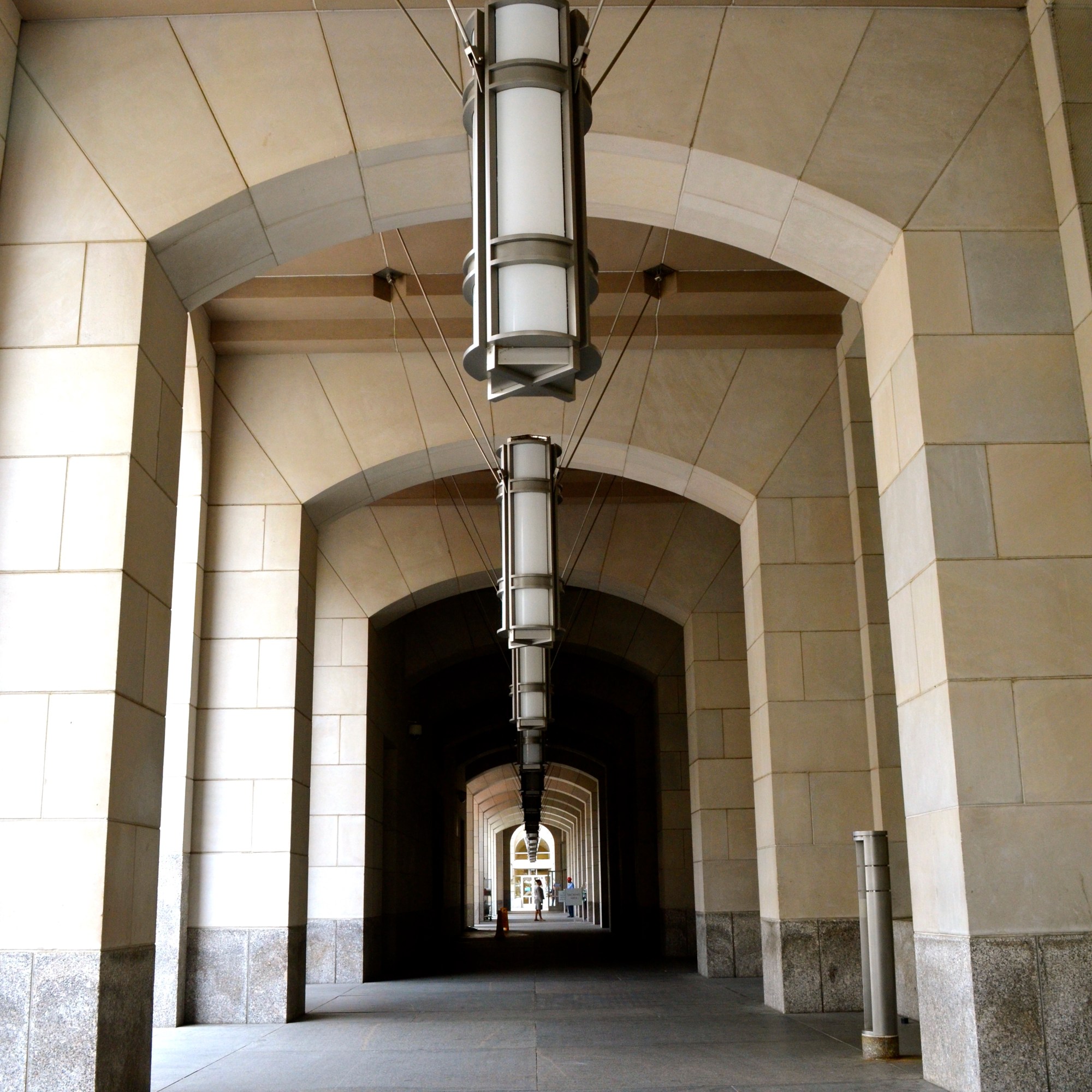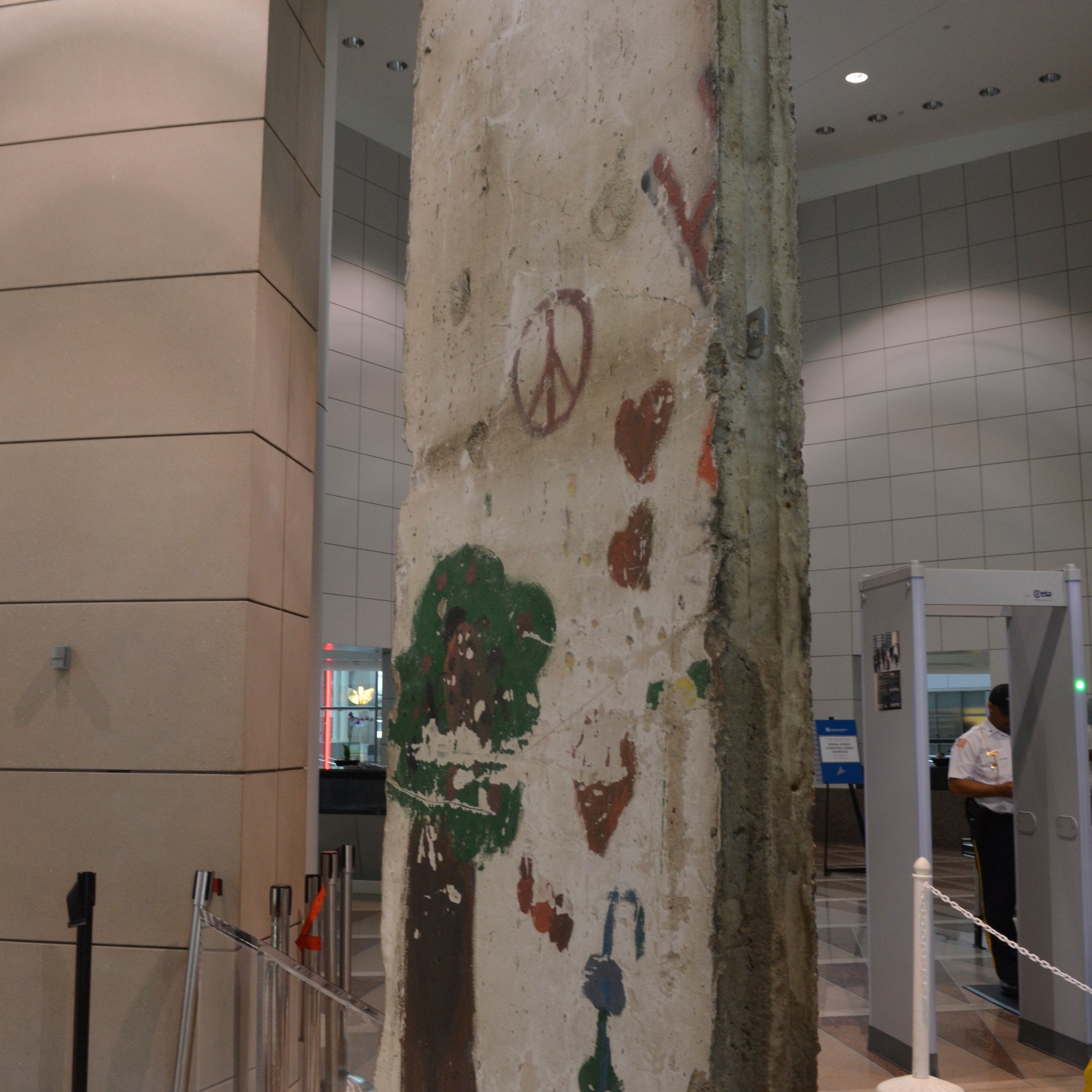 First off, let me just say I was completely surprised with how walkable DC is! I expected more like NYC, where you might walk 25 blocks between sights, but not at all! It was literally one monument starts where another ends! We spent about 4 hours there and got a large chunk of the Mall in! We had no idea where to park, so after driving around looking for a spot on the street for about 15 minutes, we were directed to the Ronald Reagan building parking by Siri. So a Federal building, but you can park there for a fee. Four stories under earth and steel and concrete was enough to make me think of the World Trade Center and the weight and enormity of it. I’m not generally claustrophobic, but I was feeling a little closed in down there! The Ronald Reagan Building is massive! Being a federal building, you do have to submit to a security check and metal detector to get into it, but it’s much less production than that of an airport. One of the first historical pieces we saw was in one of the main entrances of the Reagan building and it was a full-size panel of the Berlin Wall. Wow! To imagine all the hands that have touched that piece over the years….and mine got to be one of them. So humbling! We walked out of the Reagan Building right into the middle of the International Trade Center, which is many buildings, and my I was in awe! I could not stop taking pictures! The architecture was so beautiful, and the scale was so massive…I felt like just a speck on the course of history of this spectacular place! I looked at all the people walking to and fro in their suits, with their briefcases, on their cell phones, and wondered if they walk this everyday and never even look up? If the wonder and awe of it is completely lost on them? If they are still able to marvel at the halls that built our great nation, and appreciate being able to see it everyday? Anyway…enough of the introspection!