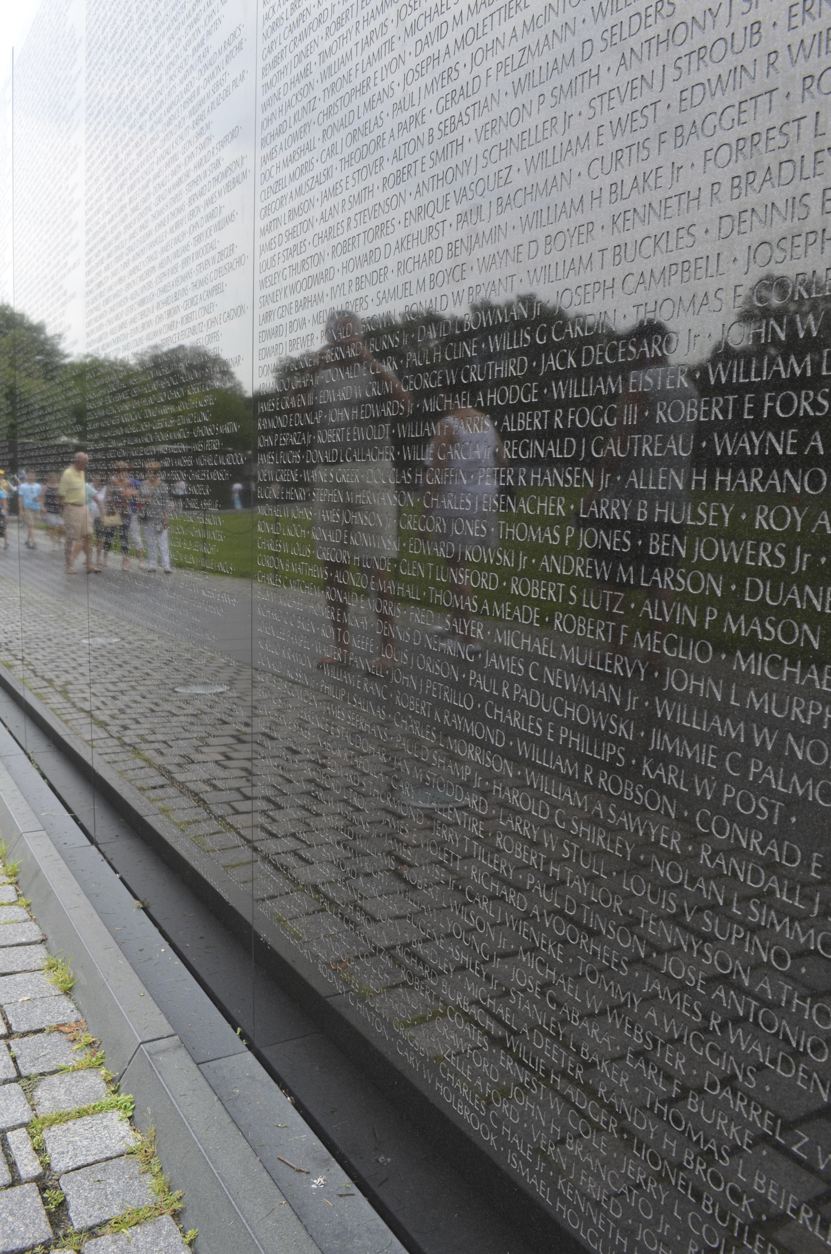 Walking out toward the Mall, we came to the Washington Monument first. Easily the easiest to see since it is so tall! Too bad it was covered in scaffolding though. :/ Walking around the monument and we turned at just the right time to see the White House through a clearing. This is as close as we got in this trip. Another time I will get closer. From the Washington Monument, we walked down the grassy hill to the new World War II Memorial and the Reflecting Pool. The WWII is still in progress. We didn’t spend much time there because it was like a sauna inside of it…no airflow! It was so hot! The whole area is a park like setting with tree-lined sidewalks…except for in the monuments themselves. Walking along the Reflecting Pool brought us to the Vietnam Memorial. I have seen the traveling wall a few times, but I really thought that seeing it in person would be a different emotional experience. It really wasn’t any more powerful than the traveling one. I found my uncle’s name…I already have a rubbing so I didn’t need to get a new one. It is a gorgeous memorial, but smaller than I thought it was going to be.