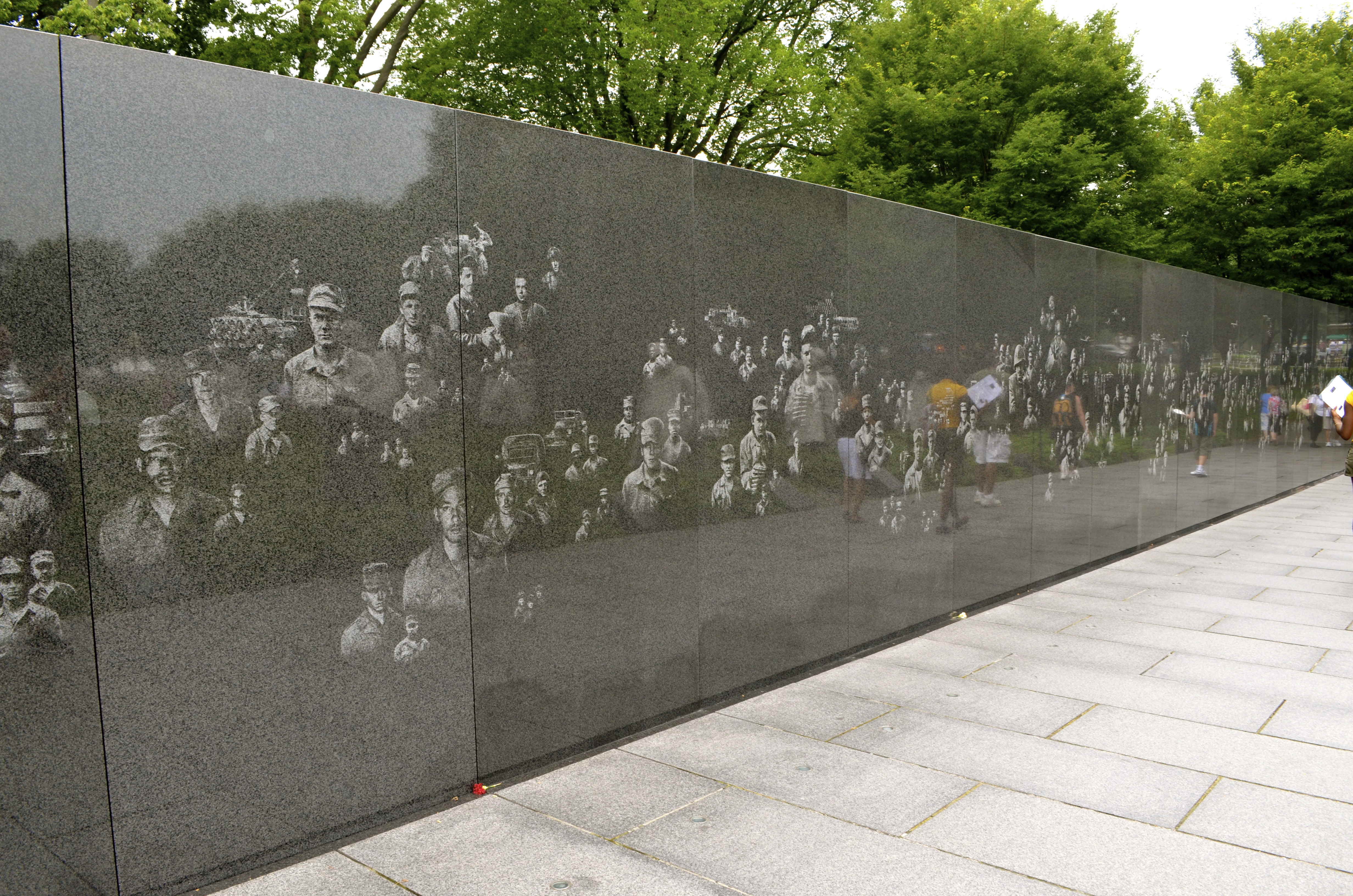 Back to the treed path led us right to the steps of the Lincoln Memorial. The enormity of this building, in both size and historical significance, is indescribable! I stood at the spot of Martin Luther King’s famous speech, I touched the marble pillars, I bought a calendar! 😉 lol! The Korean War Memorial is just a few steps away and is just as moving as it is in photos. The figures of the men are more than life size, and their faces depict the concern and determination that they must have felt.