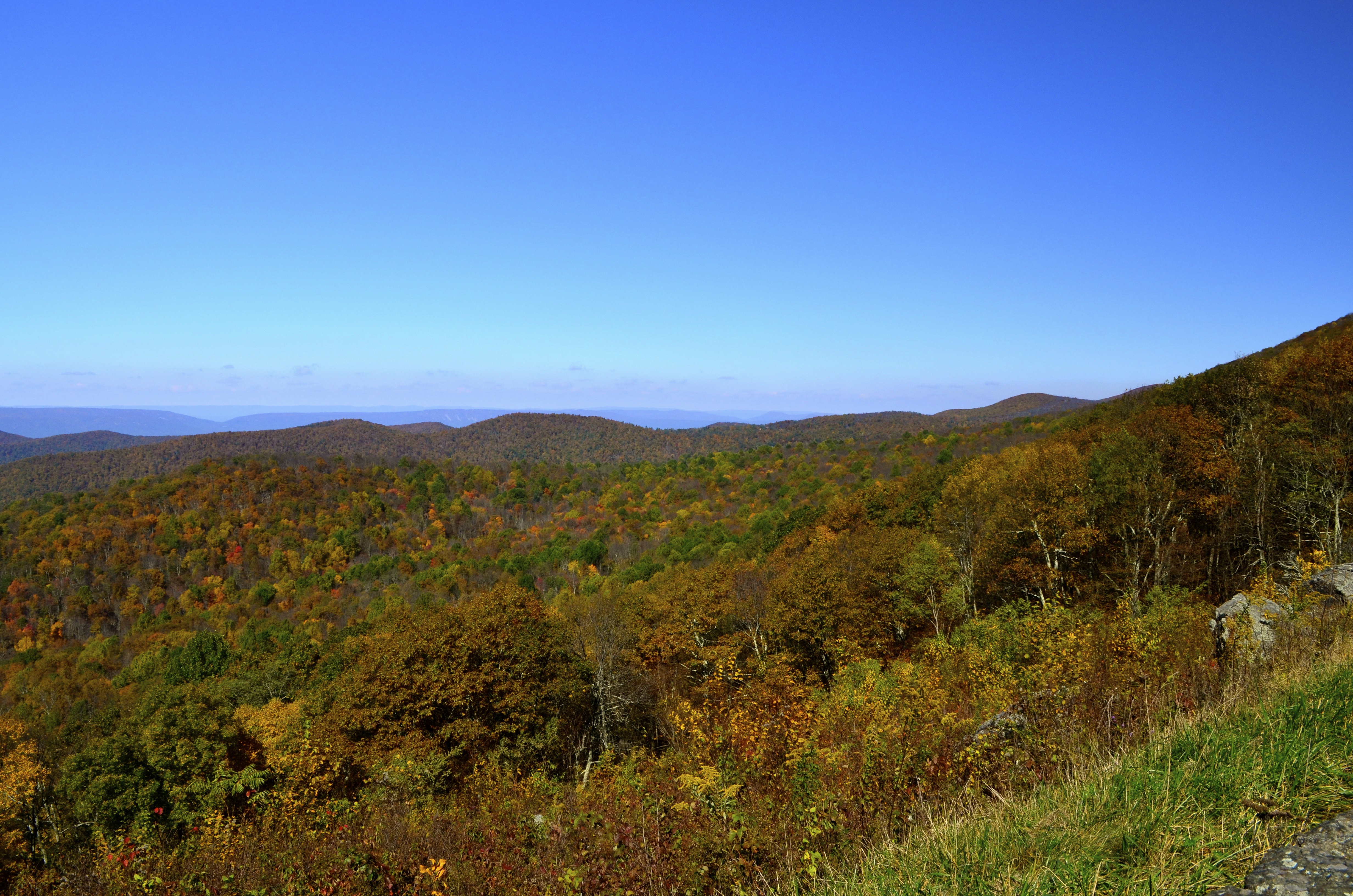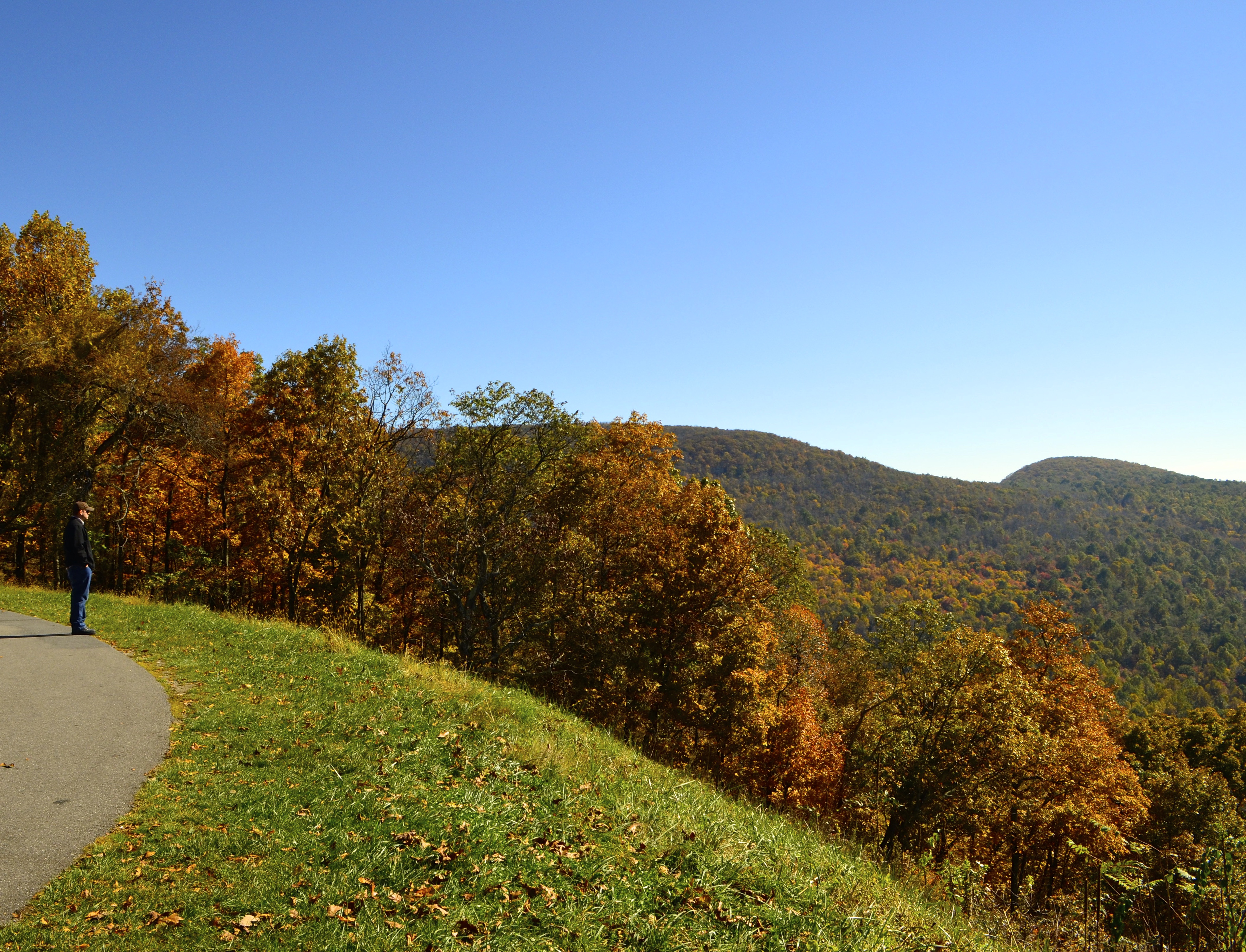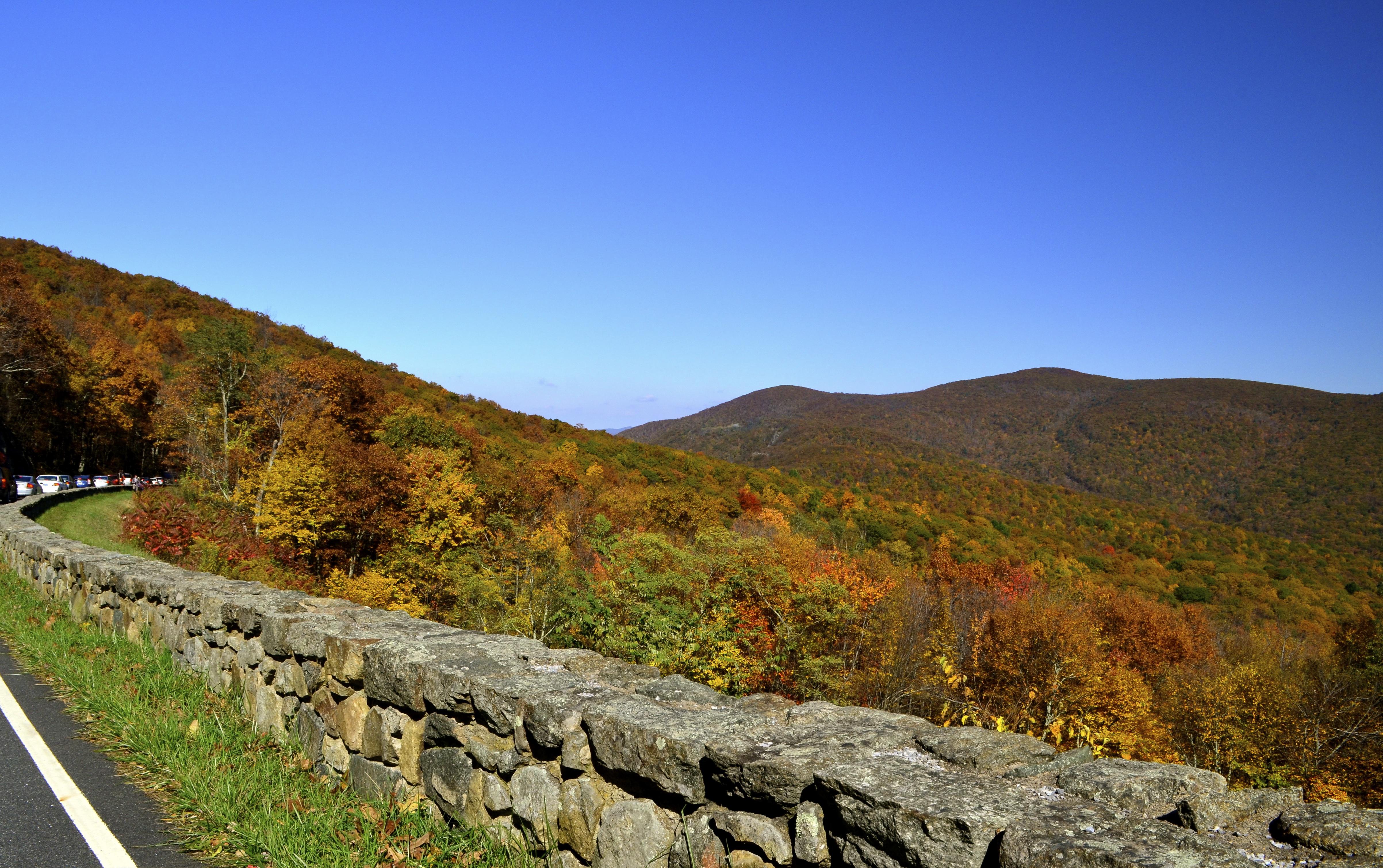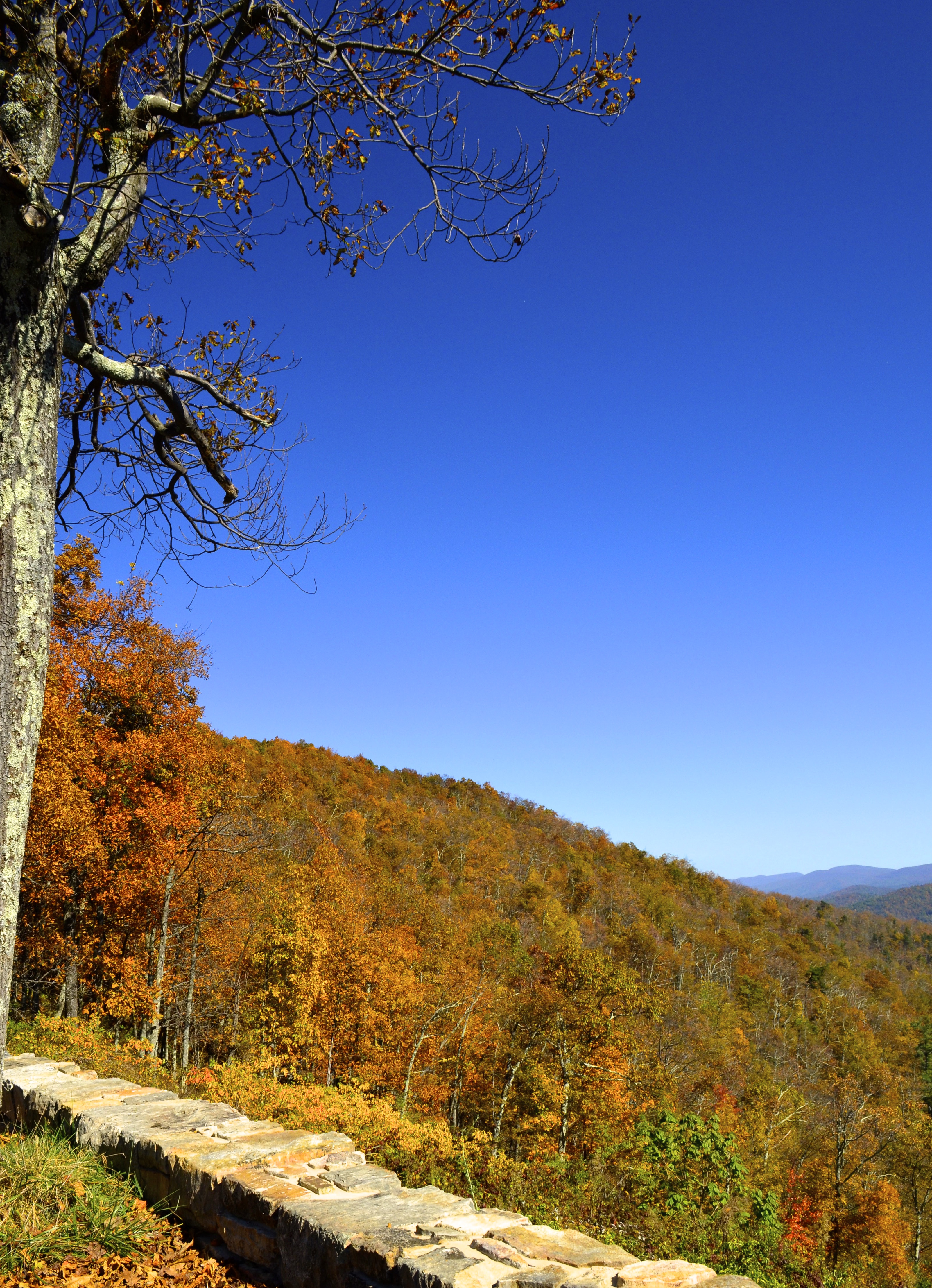 Ever since I found out we were moving to Virginia, I have been excited to see the Fall Foliage! Heck, even before moving here I had longed to visit in the Fall to see all the wonderful colors! We live within a few hours drive of Shenandoah National Park, which is absolutely gorgeous in the fall! The weather here has been cloudy and rainy, and not the best for photos, and the Government shutdown had the park closed. This weekend was the first it was open. Unfortunately, the leaves didn’t get the memo and they changed anyway. They are a bit past their prime, but there is still gorgeous sights to behold! We got lucky with a sunny day on Sunday, so I got J out of bed and we headed for a day trip to the park! It was freezing! We had a cold front move in…it cleared the skies and lowered the temperatures! It didn’t get over 50 degrees all day! And there was a cold wind. Brrr! I should have brought a heavier jacket….and some gloves!
