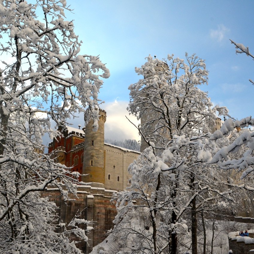 Berlin – Bavaria – Paris – Bastogne – Christmas Markets — our German vacation was so full of spectacular sites, that I just would not be able to fit it all in one blog! Therefore, I will write this in sections, with each major segment of our trip having it’s own post. This is segment 2: Ludwig’s Bavaria! We have been planning this vacation for years! Well, sort of. My friend and old co-worker, Lisa, is stationed in Germany. Ever since she moved there I have been threatening that I am going to come visit. It was always “maybe in the Fall”, then “maybe in the Spring”, “maybe just after I graduate”…you get the idea. Well we finally decided it was time and purchased the tickets…no going back now! We planned our trip in the winter on purpose…to coincide with all the German Christmas Markets! We spent 10 wonderful days touring the area, taking in the sights, eating the food, and learning more about their culture! To give you a little overview, we flew out of DC direct to Frankfurt. From there, we took a shuttle to Spangdahlem Air Base where Lisa met us and took us to her home Village, Dudeldorf. We spent the first night there, then drove to Wittlich to catch a train to Berlin, where we spent 2 nights. From Berlin, we took the train to Munich. We didn’t stay in Munich…that will be another trip I guess…but we got our rental car at the train station and drove down to Garmisch-Partenkirchen in the Bavaria portion of Germany, where we spent the night. The next morning, back in the car we drove a brief stint in Austria to get to Hohenschwangau (back in Germany) where 2 of Mad King Ludwig’s castles are nestled amongst the trees and rocky bluffs of the surrounding mountains. By mid-afternoon, we were back on the road and driving back to Dudeldorf for the night. The following day, we drove to Paris! After spending the next 2 nights there, we drove back to Lisa’s, just in time for Thanksgiving. The rest of our trip was spent on day trips; first to Trier, then to Bettendorf and Diekirch in Luxembourg and Bastogne in Belgium, and to Bernkastel for our last night there. (Have a look at the map!) We took the shuttle again back to Frankfurt, and flew direct back to DC. It seems like a lot, but it really was pretty relaxing. We walked a lot. And ate a lot! And I took A LOT of pictures! Over 1100! I won’t post all of them, to save you some time, and I will try to narrate as best I can. Please be sure to notice the page numbers… I’ll post this intro on all the entries…in case someone doesn’t start from the beginning. 😉