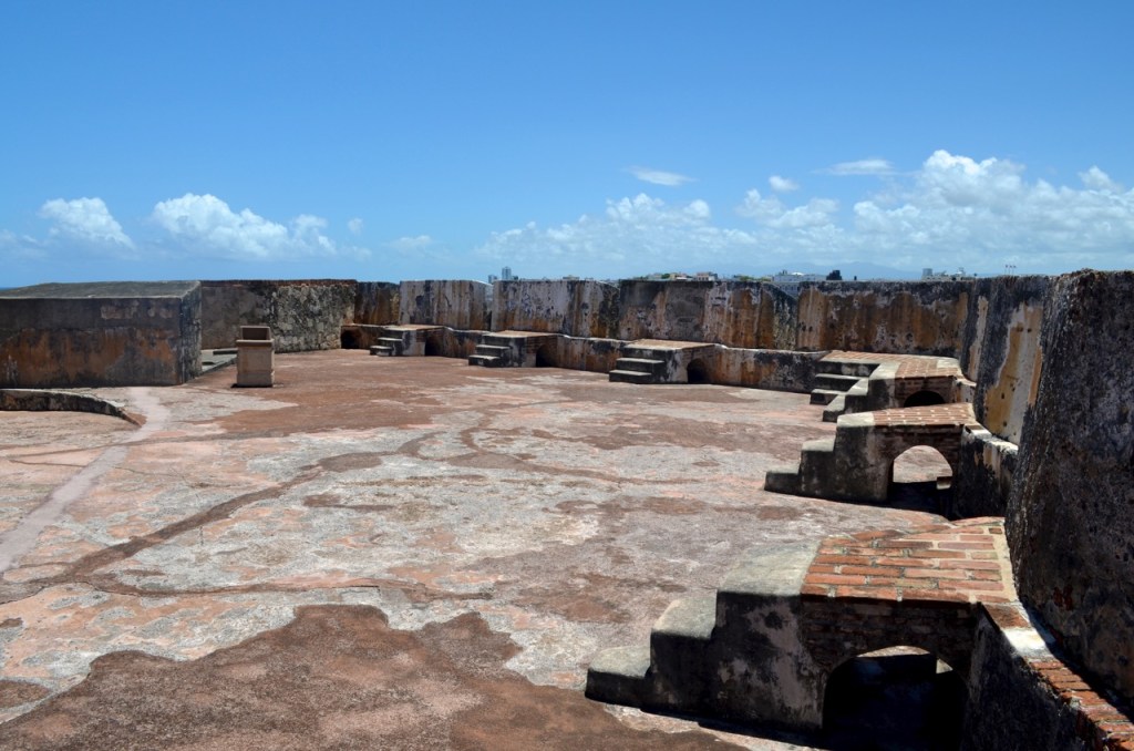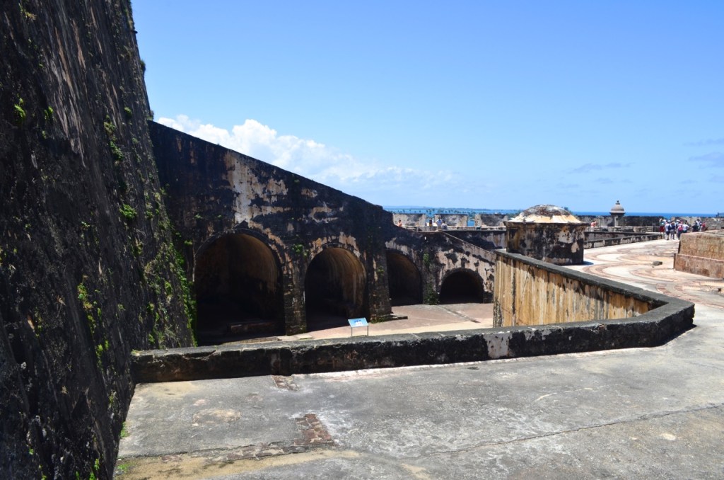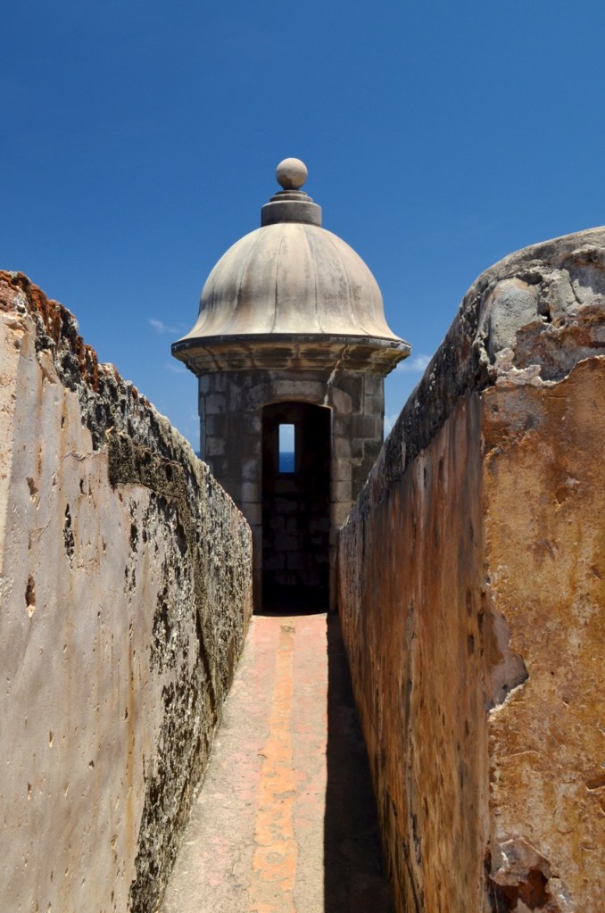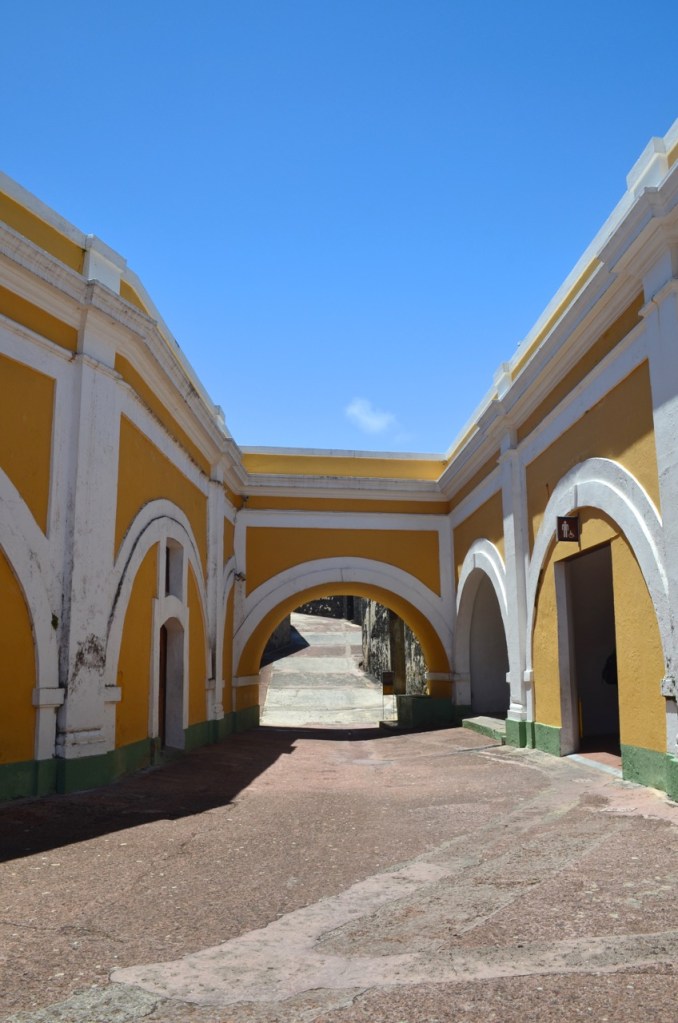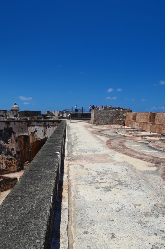 San Cristobal was built in 1634 (finished in 1771) and is 27 acres and 150ft above the sea. The forts are connected by city wall and border the north of Old San Juan. There is a little shanty town outside of the wall on the north called La Perla that we were told is a no-no place to go. It’s safe enough for tourists to not get murdered, but just because of the activity that goes on there and the locals don’t want the police snooping around. So if you mistakenly go (which would not be by accident because the only way to get in is through a tunnel that goes under the city wall) the locals will kindly guide you back out! However, there is a beautiful old Spanish cemetery between El Morro and La Perla that is worth seeing! Cementario Santamaria Magdelena de Pazzis is named for Mary Magdalen, and dates back to the late 1800’s. The pristine white marble headstones and tombs are crowded into sections that nestle around a circular domed chapel in the center, all with a spectacular view of the Atlantic Ocean! We didn’t walk into the cemetery because if you follow the wall from above, you will find an outpost that juts out almost in the exact center of the cemetery and offers amazing views! Interesting fact about the cemetery: it was built here to symbolize the journey to the afterlife, and is considered the most revered place to be buried in San Juan. People pay hefty prices to be buried there, so criminals are not allowed to be buried there.