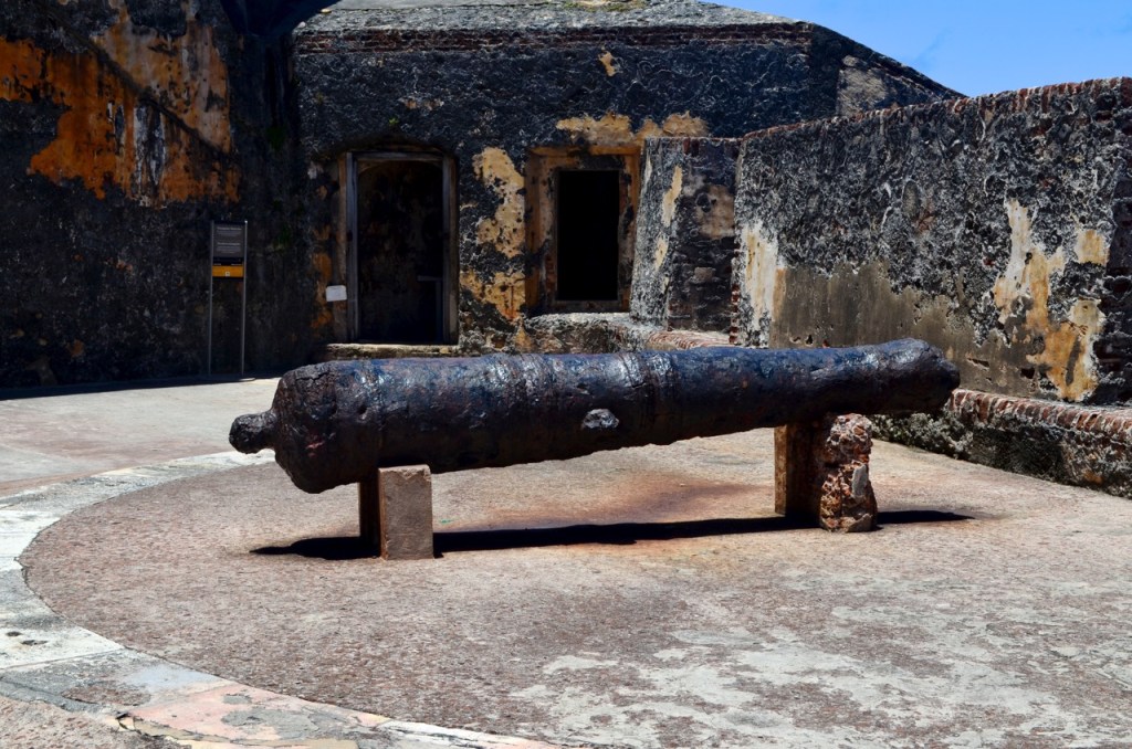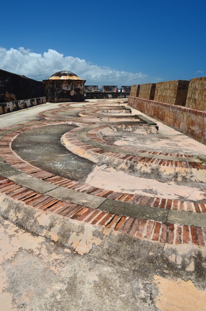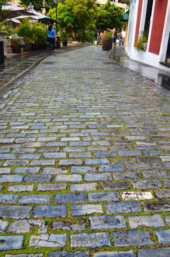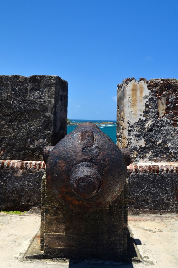 We arrived in the late afternoon so just took a little wander on the beach, got our bearings, found some dinner, and chilled the first night. Next morning we were up early and headed to Old San Juan! Old San Juan is the original Spanish settlement in Puerto Rico. Most of the buildings in this area of town are original and date back to the 16th and 17th century; colorful with old Spanish architecture. The roads are narrow and paved with blue cobblestones. Blue from the cobalt that is in them. The original 7 square block settlement was at one time completely surrounded by the tall city walls, 40 feet high and up to 20 feet thick! There were originally five gates to the city built into the walls. These were giant wooden doors that allowed entrance into the city, and protected the city from invaders. They were guarded and closed at sundown. If you were outside the gate at sundown, you stayed there until morning! Today, about half of the original wall remains, and only one gate remains, la Puerta de San Juan. Back in the day, this was the gate in which ceremonies and welcoming of important people took place. It is the only gate that remains today.