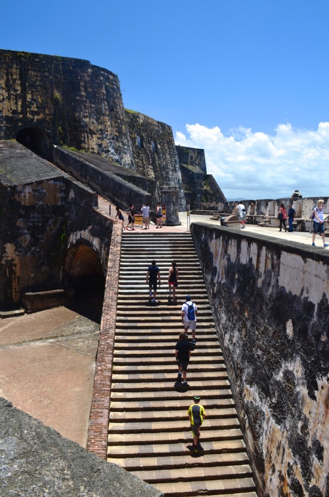 After some much needed cooling off, we hit the streets again heading to Castillo San Felipe del Morro. San Juan has two old forts, San Felipe del Morro and San Cristobal. We only visited El Morro. It is the older of the two, but not by much. Less than 100 years. Construction on El Morro began in 1540 and was complete in 1589. But much of the walls there today were done in the 1760’s during the reconstruction. Even though El Morro is the smaller of the two forts, it is still expansive! It rises 140 ft from the ocean, has 6 levels, and 18ft thick walls! It’s a beast! There are so many tunnels and walkways and stairways and ramps and outposts and even a lighthouse! It is massive, and amazing to see!
