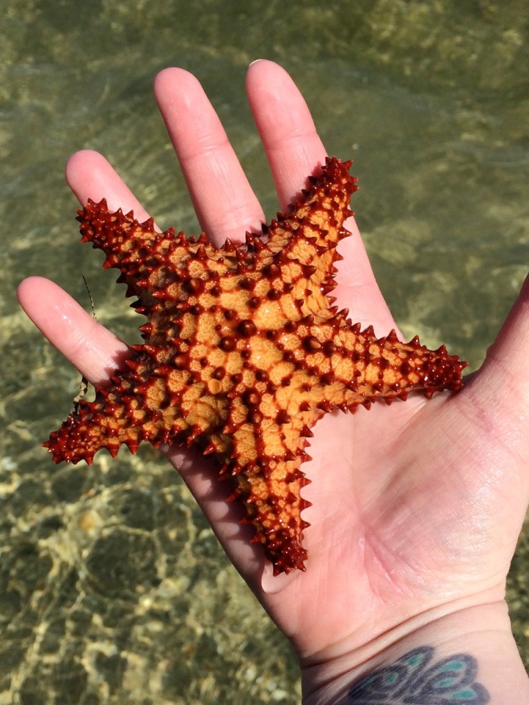 The main tourist street is lined with open air eateries with a view of the Caribbean. Really beautiful and exactly what I expect a tropical paradise to be! We stayed at the Esperanza Inn Guesthouse that was sort of like a B&B without the B. It was a house, converted into lockable bedrooms. Each had it’s own bathroom. There was a lovely community deck, and a rooftop terrace. No TV and no phone in the room, but they put beach towels, a soft-sided cooler, and foldable beach chairs in the room for your use. Very accommodating! And super friendly! I can honestly say it is the first time I have booked a room and received a personal email welcoming us, giving information about the island, and asking our flight info and what time we would arrive so they could be sure to be there to greet us. We felt very welcomed…by everyone on the island! The beaches were gorgeous…and almost always empty! Nearly every beach we went to, we were the only ones there! Due to the reef, they aren’t very good for swimming, but they are perfect for sitting! 🙂 One beach in particular on the north side just next to the Mosquito Pier would have been perfect for snorkeling! The pier blocked the big waves from the Atlantic, and the little bay was home to starfish! It’s sometimes called starfish beach. I loved it! To me, the starfish themselves would have been worth the trip!